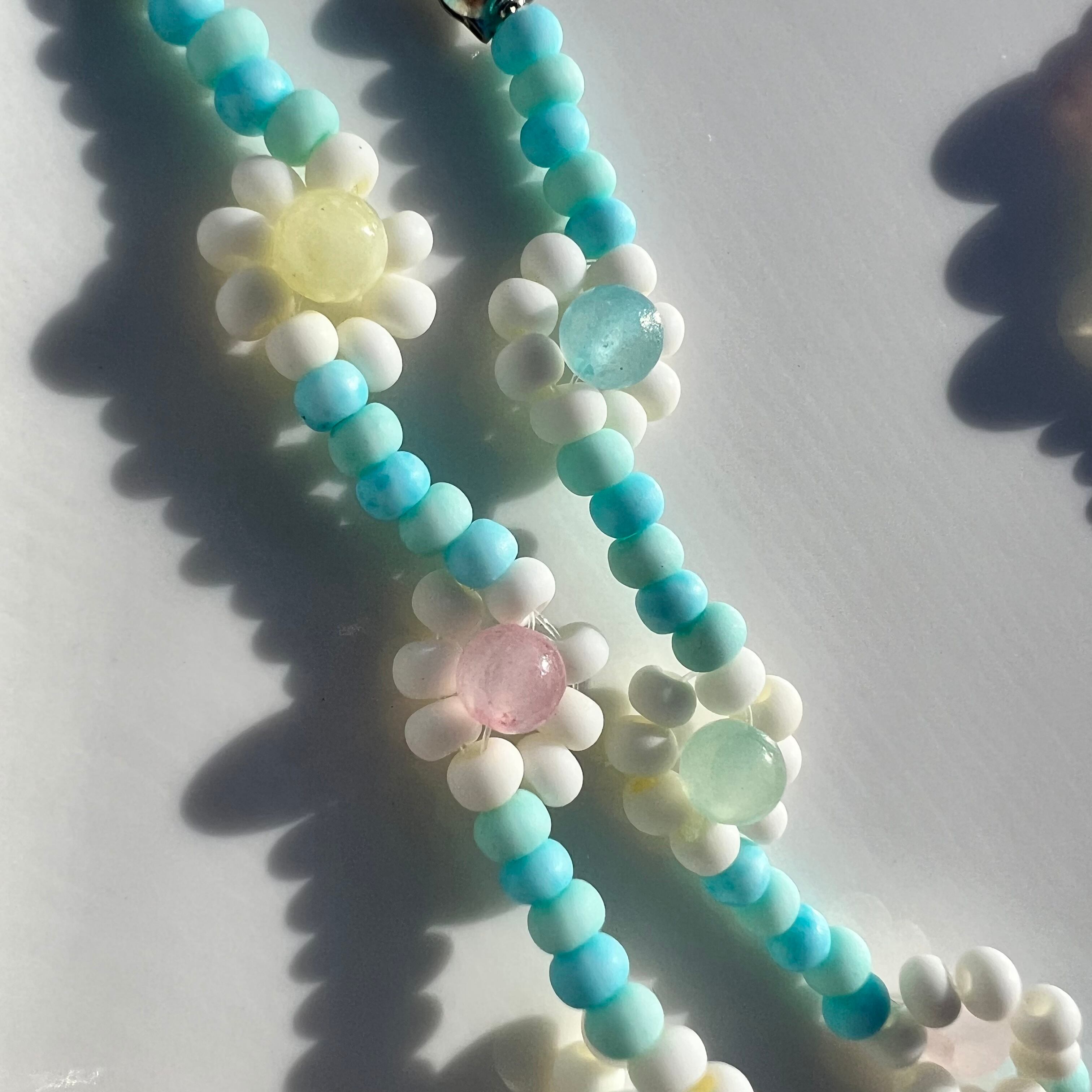 パステルカラーの天然石と淡い色のブルー系ビーズは相性◎✨