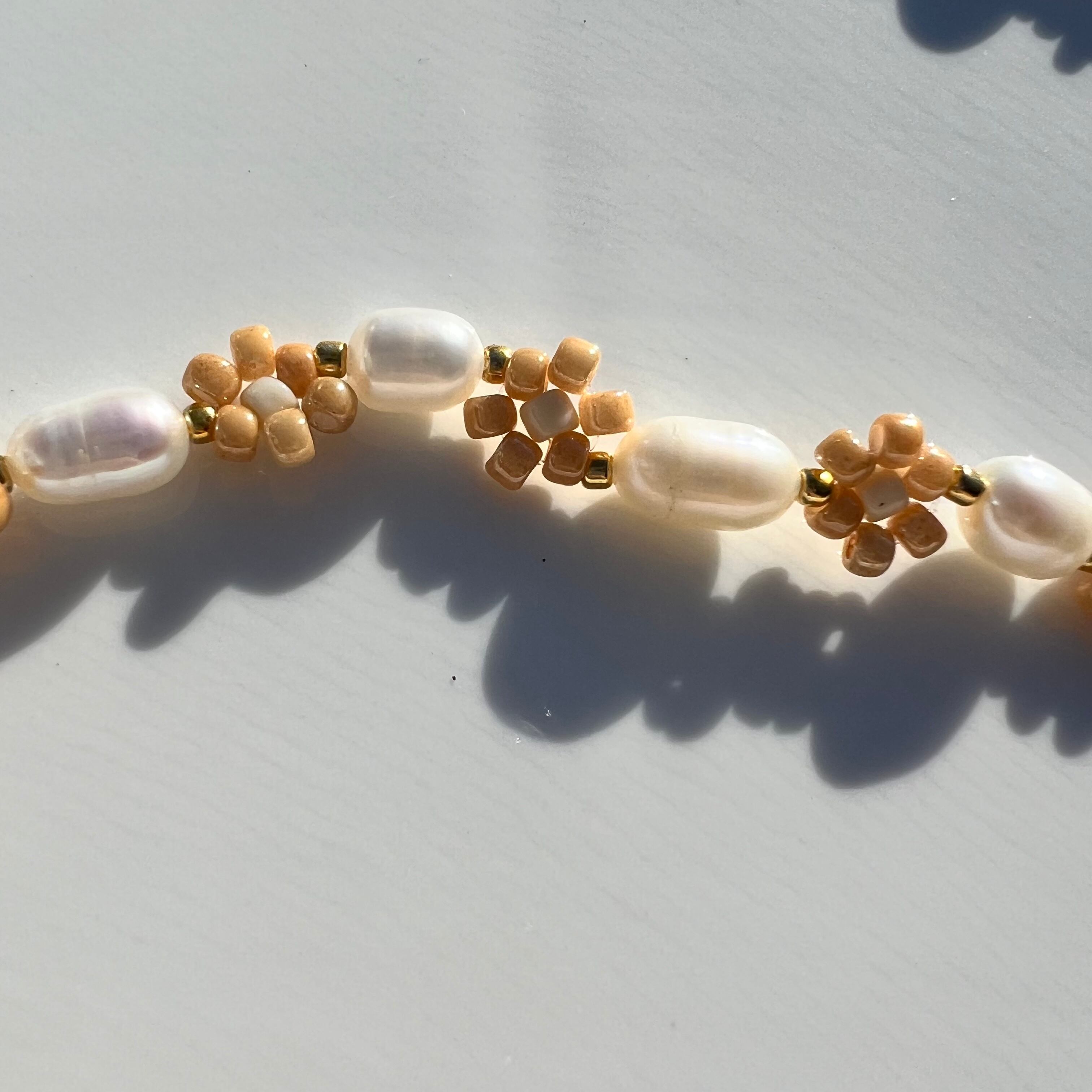 マロンカラーのお花とライス型の淡水パールを使用したネックレス✨
