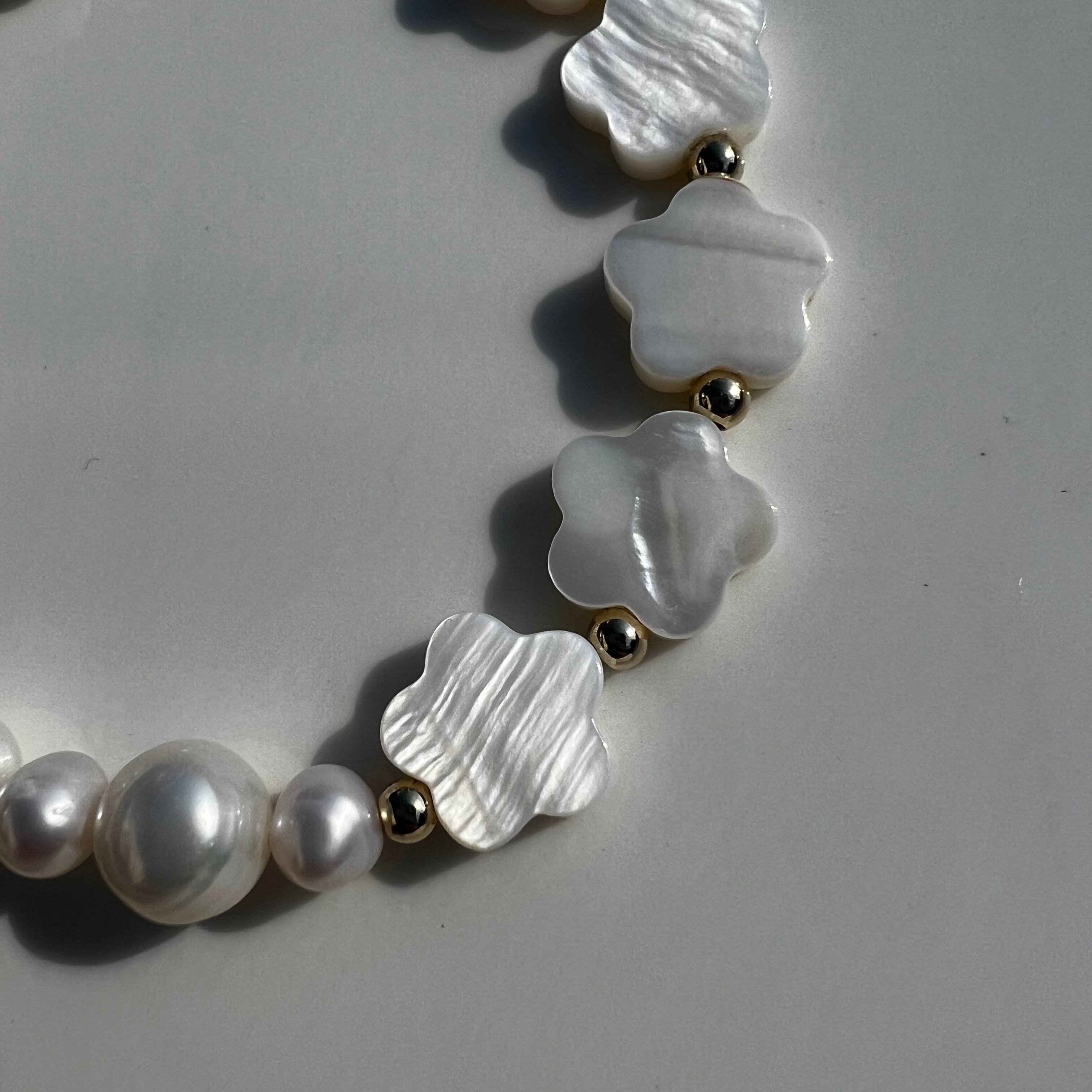 お花のパーツはシェルを使用し、ハートのパーツはマザーオブパールを使用しております✨