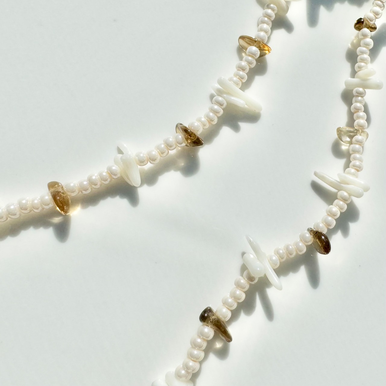 不安や緊張を鎮め心身を癒してくれるウィスキークォーツと、マイナスなエネルギーを浄化してくれる、ホワイトコーラルの石言葉からイメージしてお作りいたしました(*^^*)