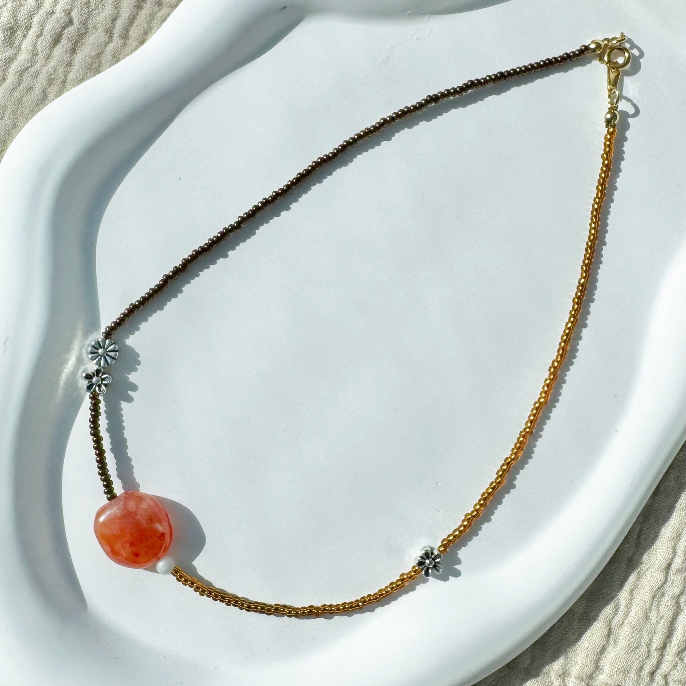 秋らしいブラウンカラーにオレンジ色のカーネリアンが目を惹くアクセサリー✨