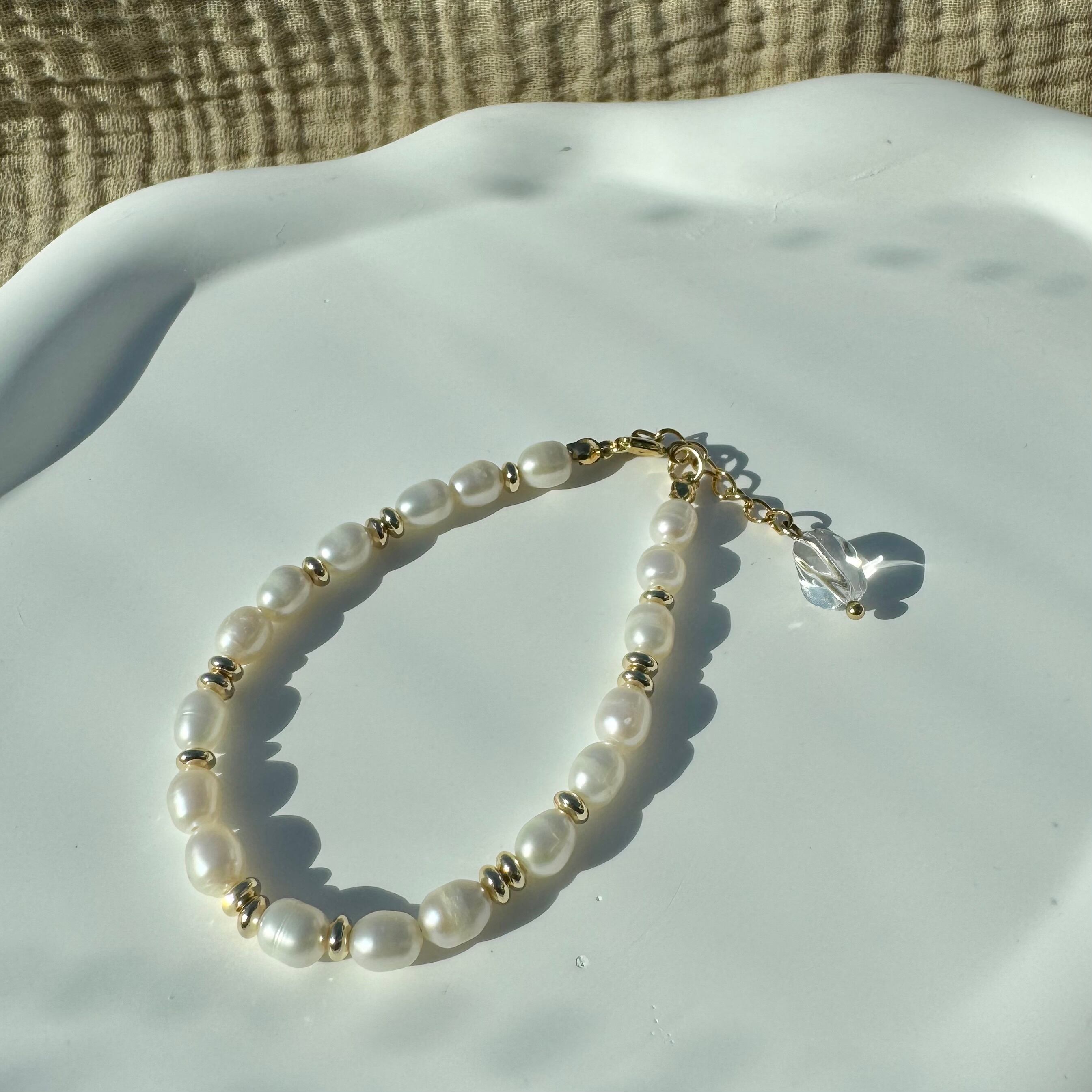 淡水パールとゴールドビーズの組み合わせが大人っぽいデザイン✨